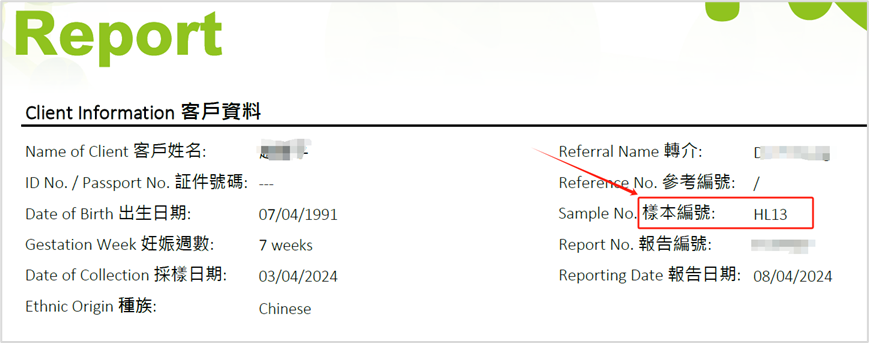 3、输入样本编码和报告姓名。