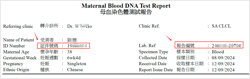2、输入(1)报告编码 注:查看您的检测报告(2)证件号码:查看您的报告。如果您没有提供有效证件号码,那么证件号码就是孕妈妈出生日期