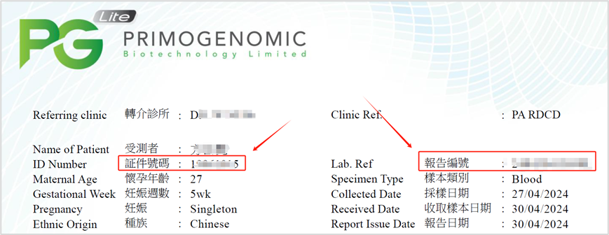 3、输入(1)报告编码 注:查看您的检测报告(2)证件号码:查看您的报告。如果您没有提供有效证件号码,那么证件号码就是孕妈妈出生日期
